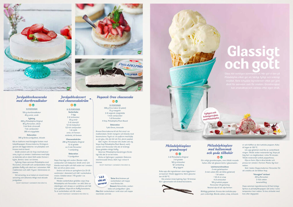 For Philadelphia, we created Njut – a tri-annual publication reaching 12,000 food professionals across Sweden. Each issue is built around seasonal themes, turning Philadelphia from an ingredient into the hero of the kitchen. We handle everything: concept, editorial direction, chef interviews, recipe development, food styling and photography. The result feels more like a trusted industry magazine than branded content – and that’s exactly the point.