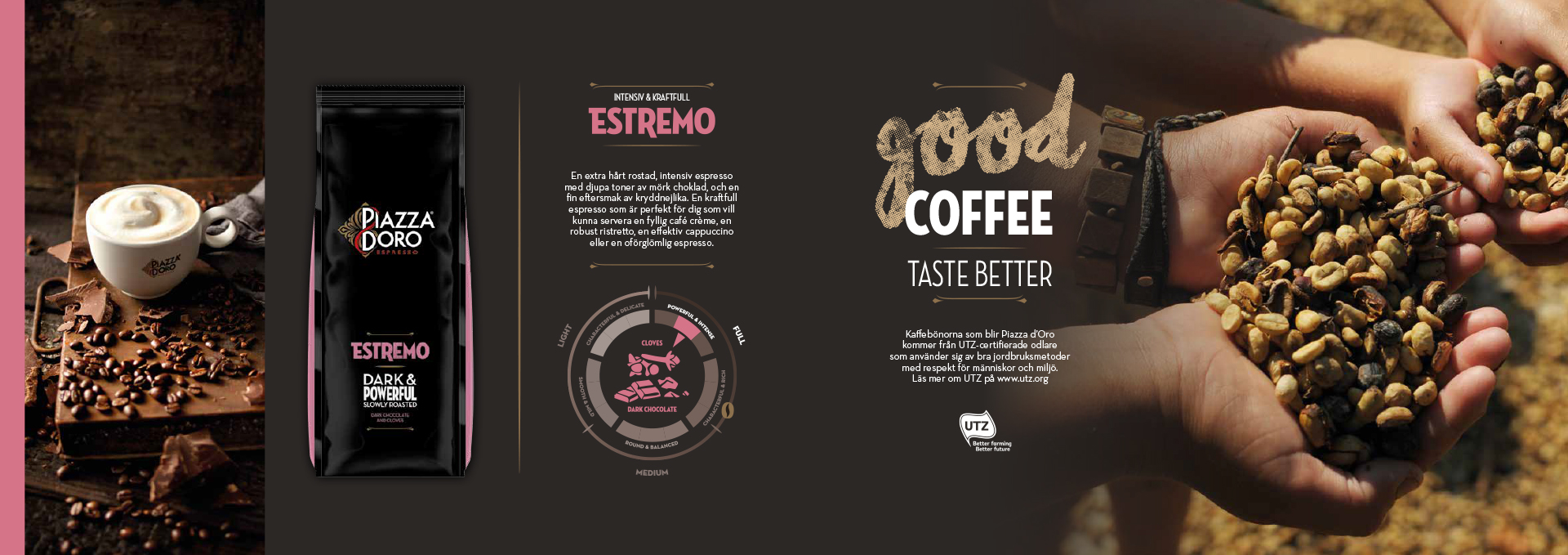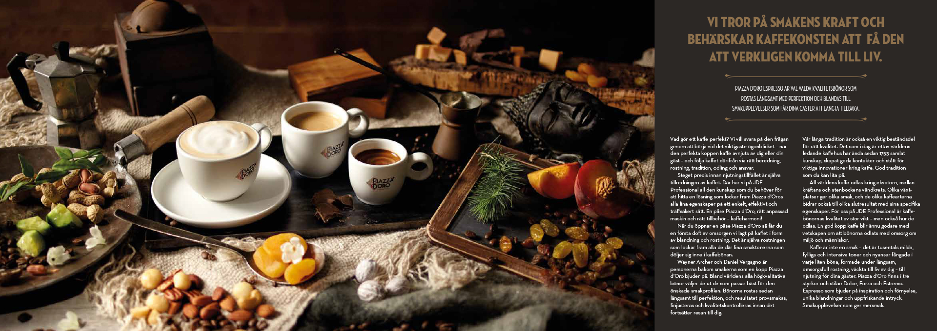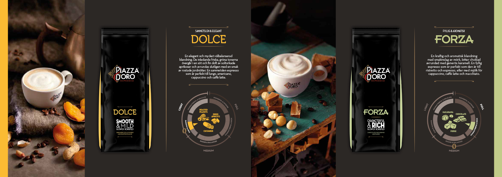 Swedish launch of Piazza d’Oro Espresso – a premium coffee well-established in markets across Europe, now arriving in Sweden. Three strengths, three characters: Dolce, Forza, and Estremo. Each a distinct experience; all built on the same commitment to craft and flavour.