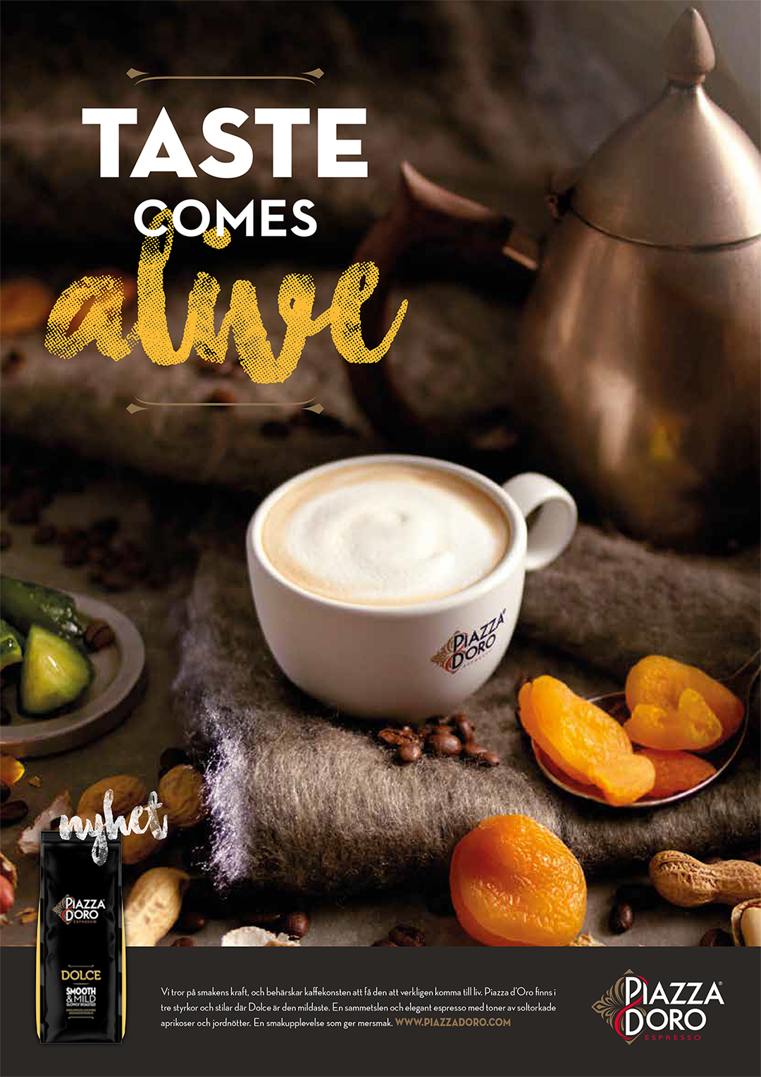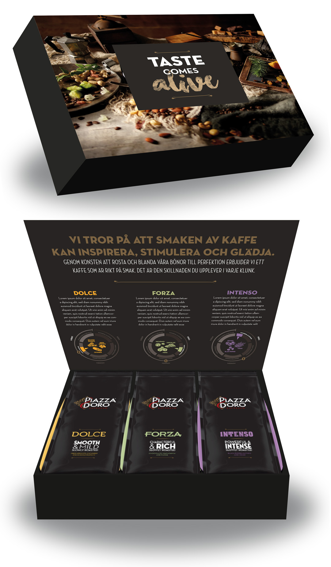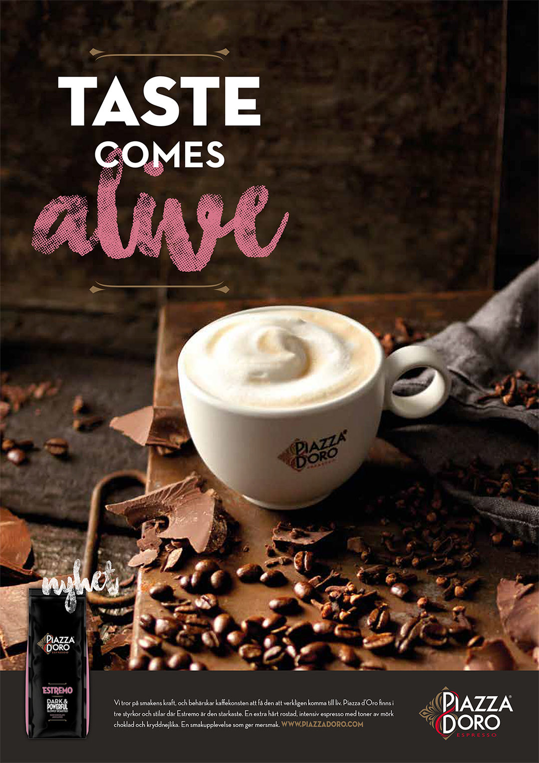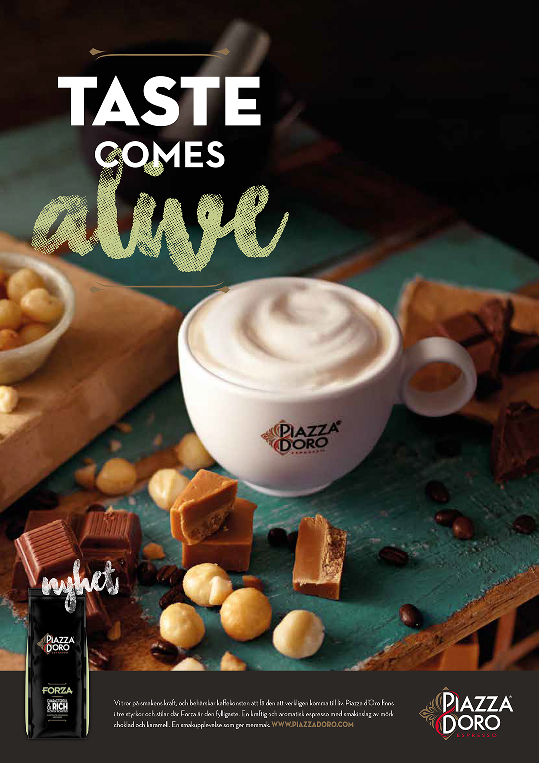 Swedish launch of Piazza d’Oro Espresso – a premium coffee well-established in markets across Europe, now arriving in Sweden. Three strengths, three characters: Dolce, Forza, and Estremo. Each a distinct experience; all built on the same commitment to craft and flavour.